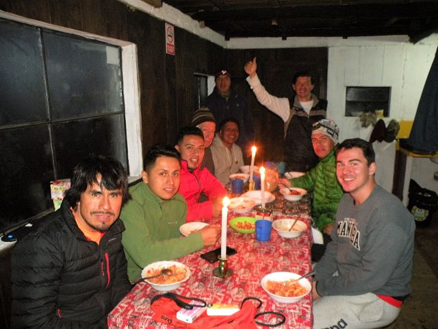 Afterwards, the trip started with a short drive to the entrance of National Park Sangay. From there, the team continued with the hike on a muddy path to the mountain refuge, while mules accompanied the expedition, helping with the heavy stuff. After a couple of rainy hours, the 10 motivated mountaineers reached the cozy hut. With a delicious dinner they refreshed their energy and enjoyed breathtaking views of the surroundings at night.